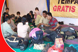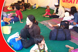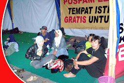 pemudik memanfaatkan fasilitas istirahat gratis yang disediakan senkom mitra polri kab. Sidoarjo di terminal Bungurasih