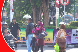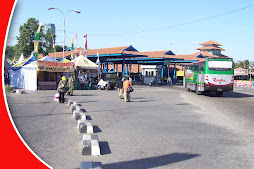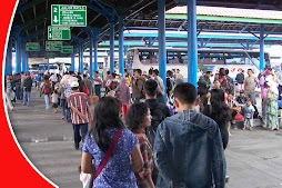 siang hari di depan pospam, saat pemudik berdatangan di terminal